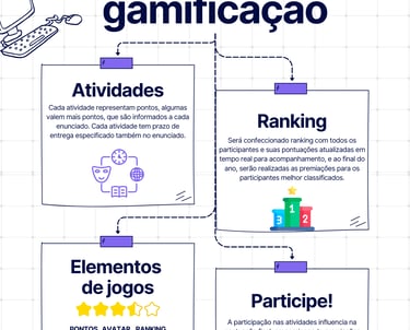 Durante o período da formação (você vai definir de acordo com os conteúdos/interações e abertura formativa da escola), esta página apresenta materiais, atividades, desafios e missões, onde cada uma tem uma pontuação (informação inserida na atividade).