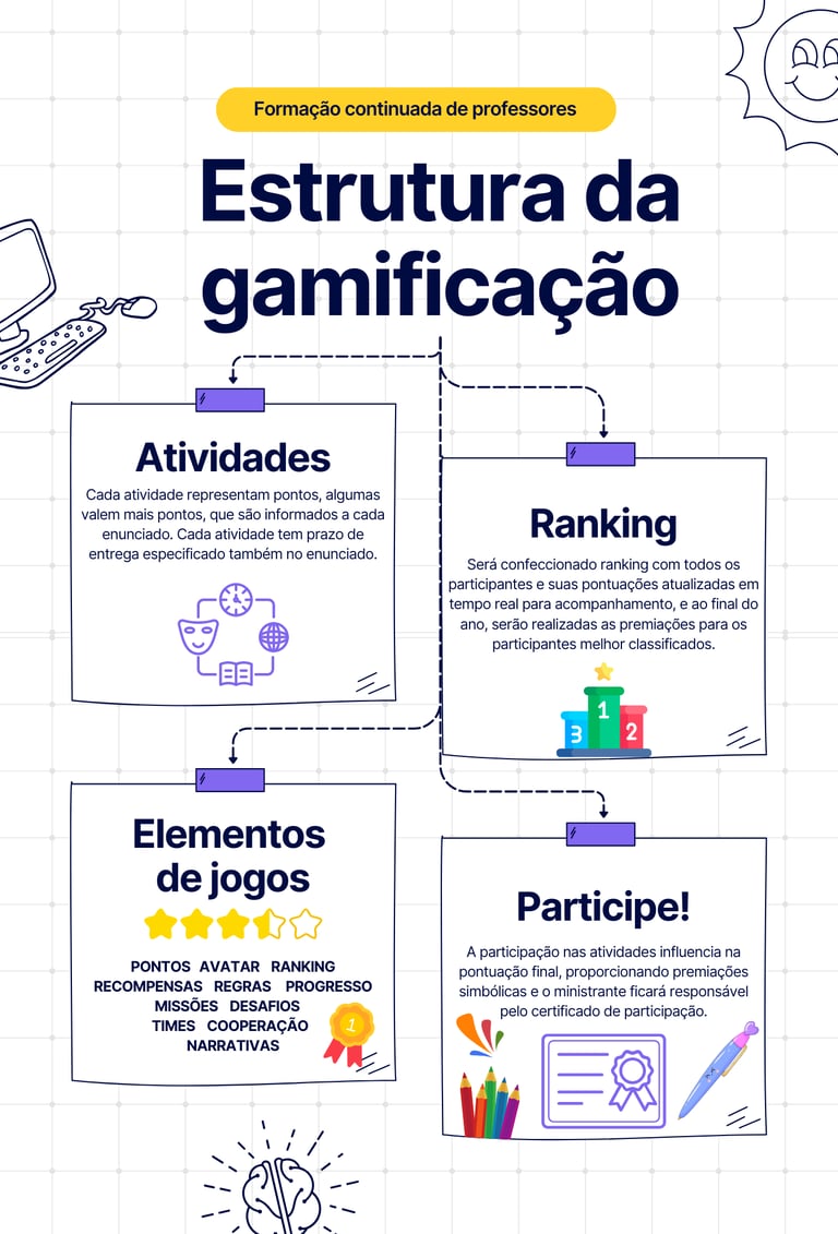 Esta formação continuada foi planejada de modo a ser GAMIFICADA