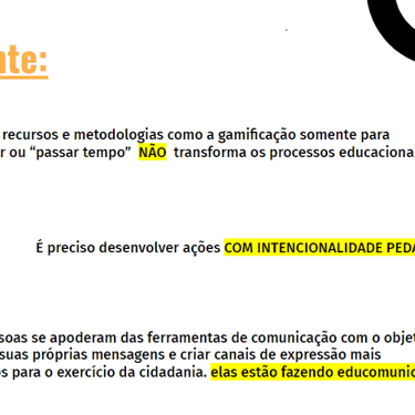 O projeto busca investigar a construção de design educacional que integre os princípios da educomunicação e da gamificação, por meio de formação continuada de professores.